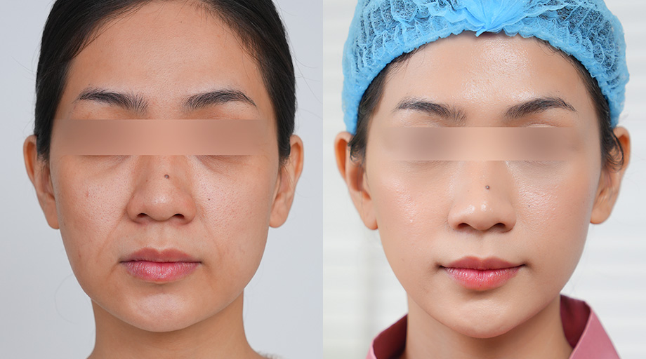 - Vùng má và cằm được nâng nhẹ tự nhiên