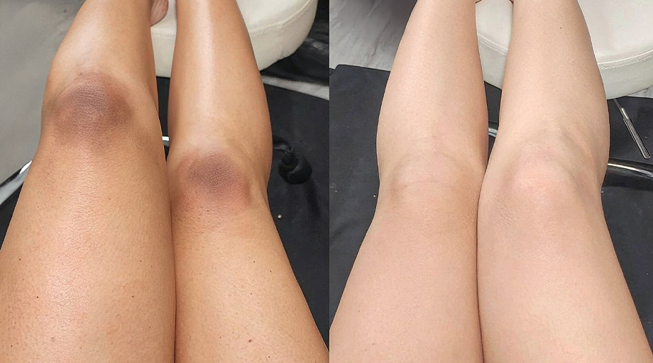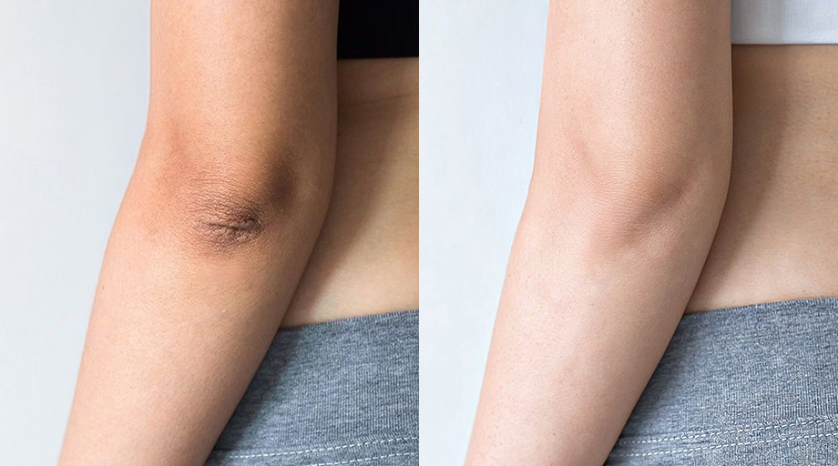 • Những khu vực da dày và khó đáp ứng như khuỷu tay, đầu gối, mắt cá chân trở nên sạm màu rõ rệt