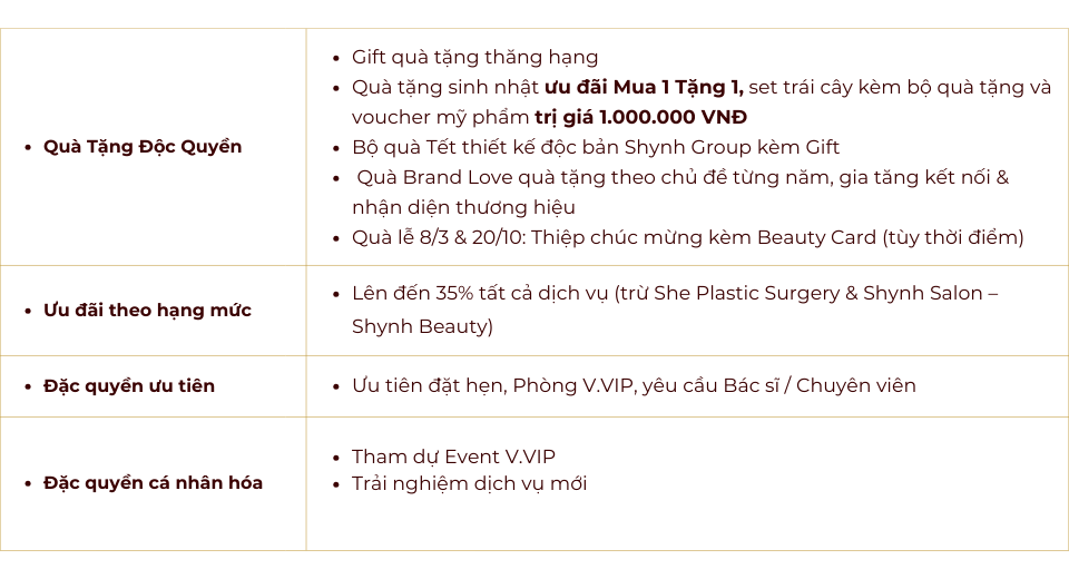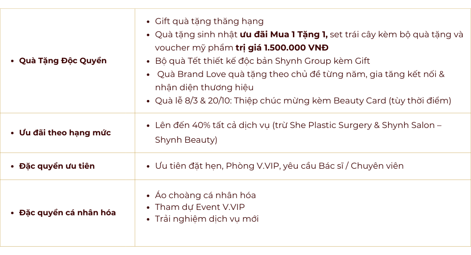 Giá trị càng lớn, quyền lợi càng tăng, biến mỗi trải nghiệm làm đẹp thành một hành trình trọn vẹn và đáng nhớ.